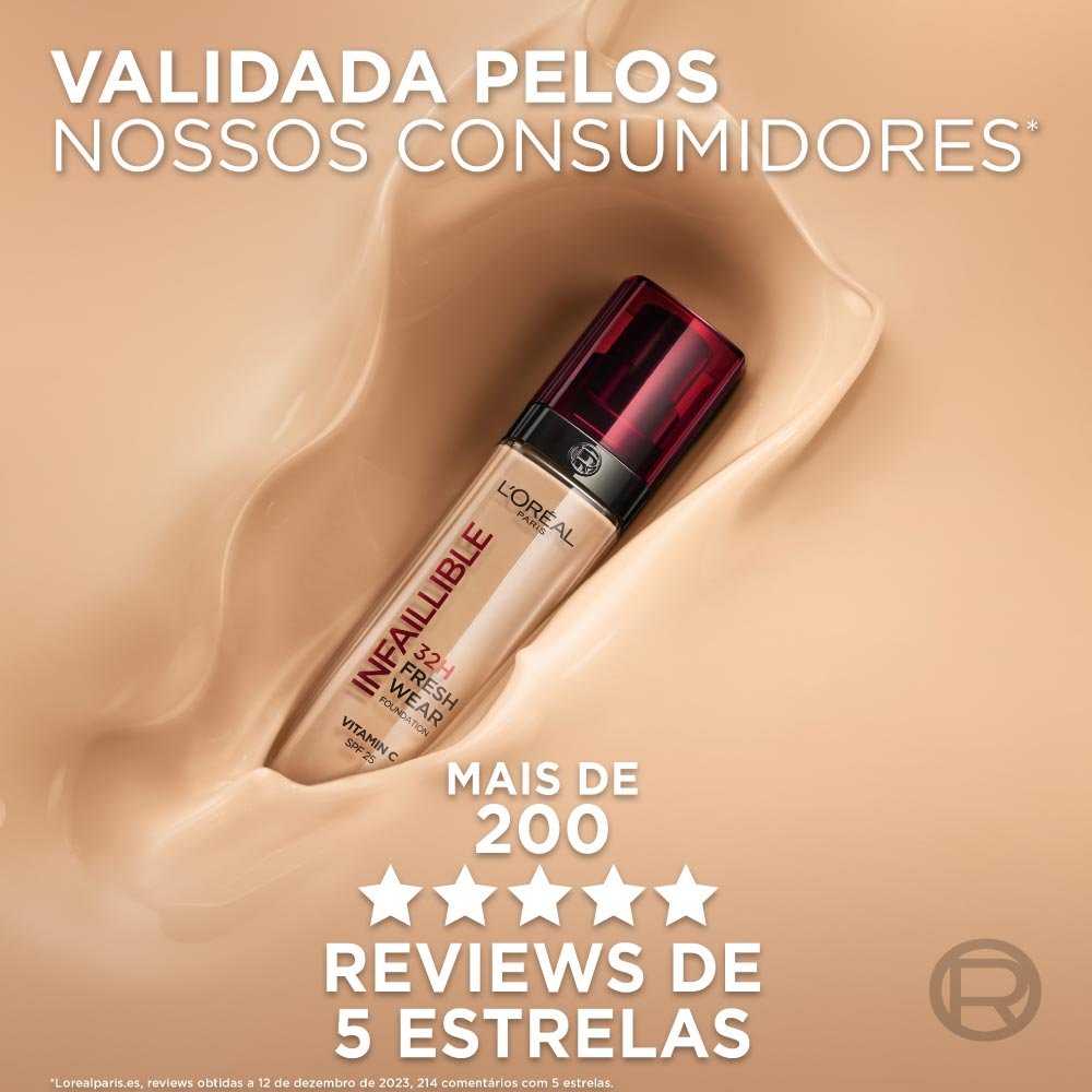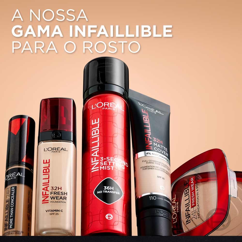 Sinta, com cada aplicação, uma luminosidade instantânea graças à sua fórmula refletora. Pele iluminada e protegida com Infaillible 32H Fresh Wear, que contém SPF 25.