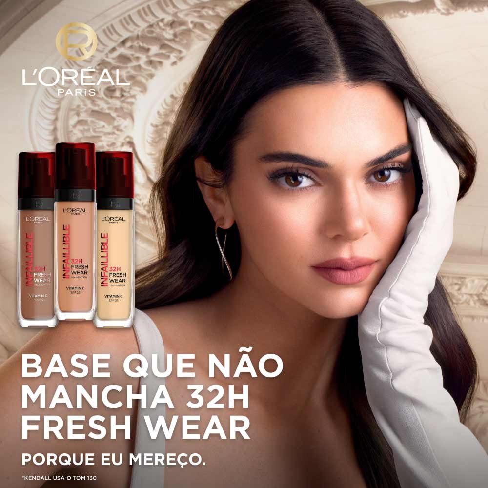 Pele com acabamento natural, com a base Infaillible 32h Freshwear de L'Oréal Paris.