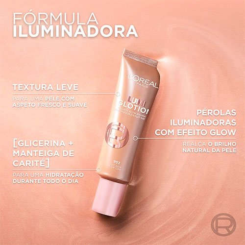L'Oréal Paris Glotion Fórmula Iluminadora, Tom Fair. Reforça a luminosidade natural da pele para uma pele luminosa e hidratada com um acabamento natural.